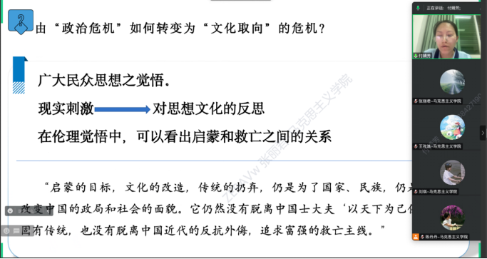《中国近现代史纲要》课程的参赛教师运用详实的历史资料、直观的图表、精彩的视频,围绕中国近代以来的重要历史时期、重大历史事件、主要历史经验等进行了阐释与探讨,将历史与现实相结合,让理论活起来、新起来。