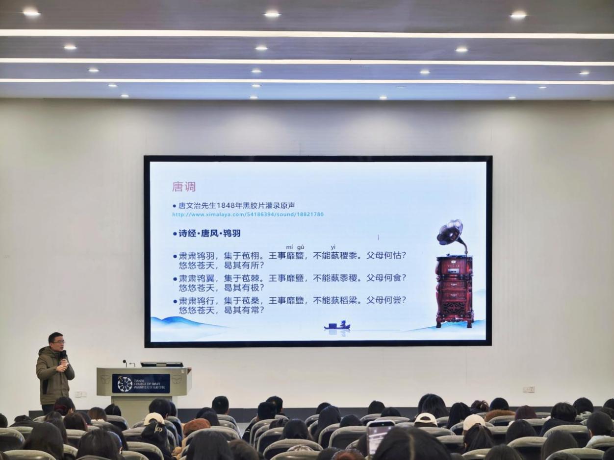 1月5日,由学校党委工作部、马克思主义学院主办,西财天府中华吟诵推广中心承办的“以诵传韵 以文化人”专题讲座在德阳校区B101报告厅举行。本次活动邀请西南财经大学天府学院现代管理学院教师牟文浩担任主讲,共计190余名师生参加活动。
