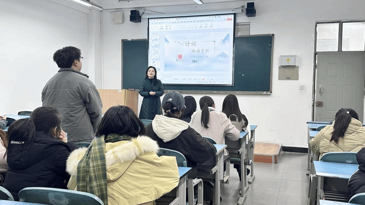 12月11日,第二场讲座由四川省吟诵学会理事、绵阳市吟诵学会副会长李娟主讲。李娟作为四川吟诵调的传承人,生动讲述了四川吟诵调的地域特色与文化价值,并通过现场吟诵与逐句指导的方式,带领大家亲身体验并领略四川吟诵调的无穷魅力。李娟的讲解不仅加深了师生对四川吟诵调的理解与认识,更激发了大家对中华优秀传统文化传承与创新的深刻思考与积极探索。